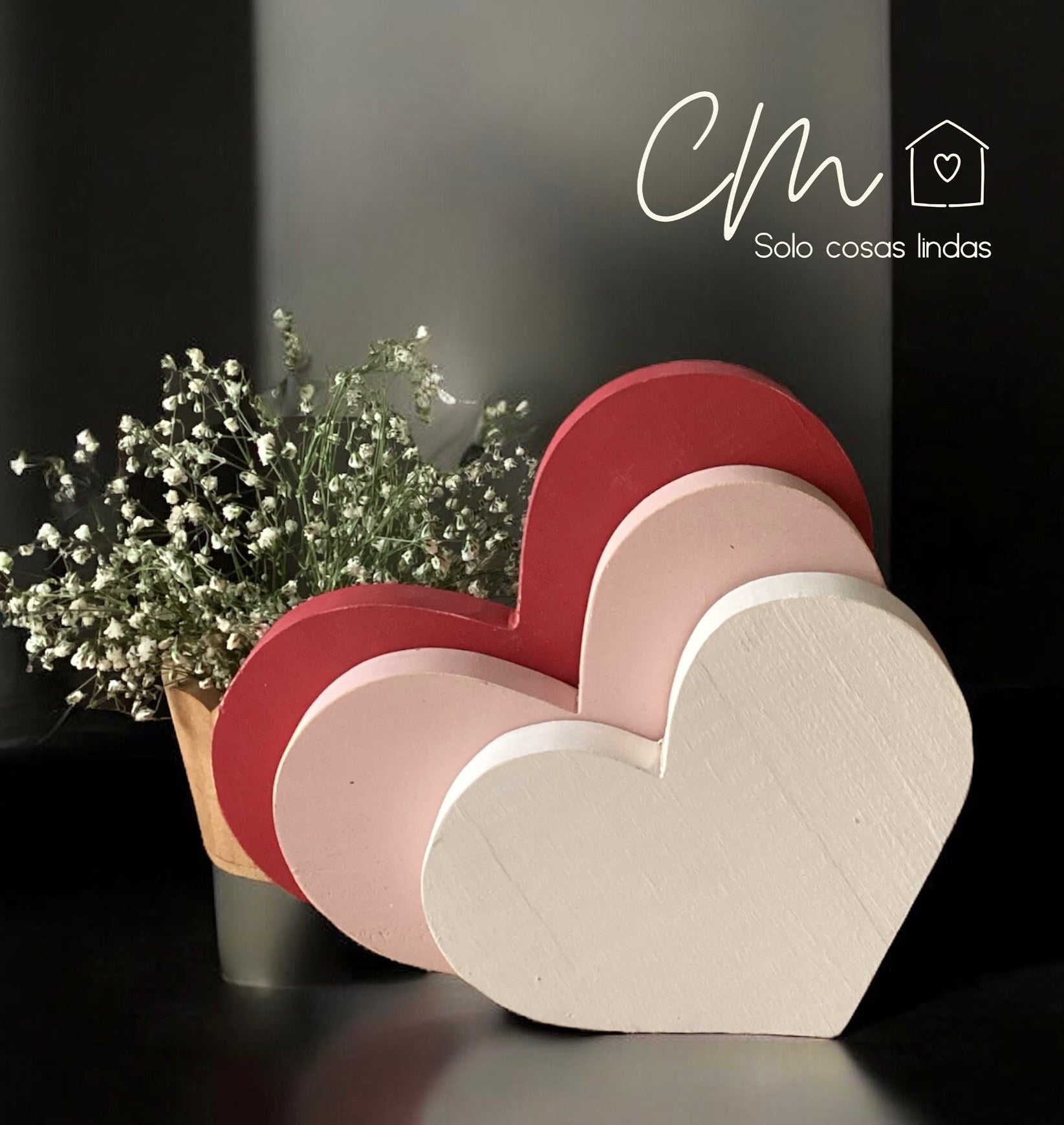 3 corazones de madera